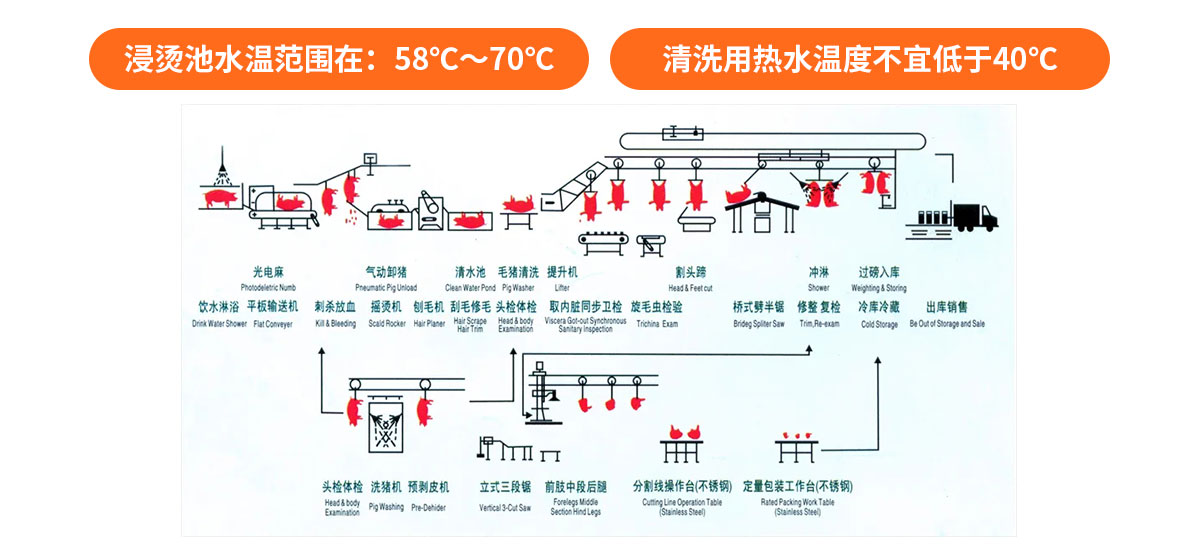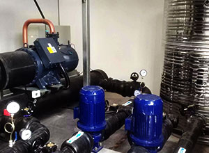 生豬屠宰需要70度~80度熱水,采用水源熱泵+余熱回收設(shè)備。